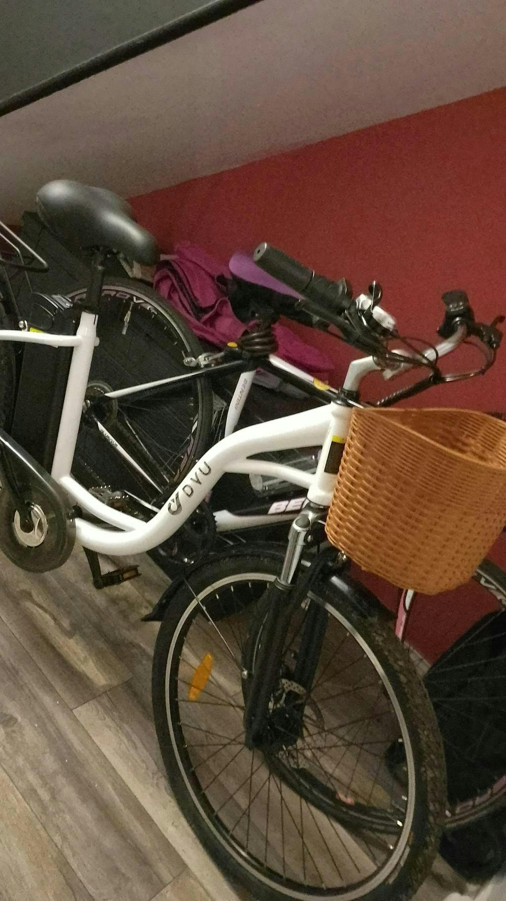 The DYU C6 is a 26-inch city e-bike designed for effortless commuting and everyday convenience. Powered by a 250W motor and a 36V 12.5Ah detachable battery, it offers a 60KM range with added portability and security. Enjoy a smooth, comfortable ride with front fork suspension and seat shock absorption, while Shimano gearing and disc brakes ensure safety and control. With a front basket and rear rack, the C6 provides ample storage, making it the perfect choice for daily errands, work commutes, or weekend rides!