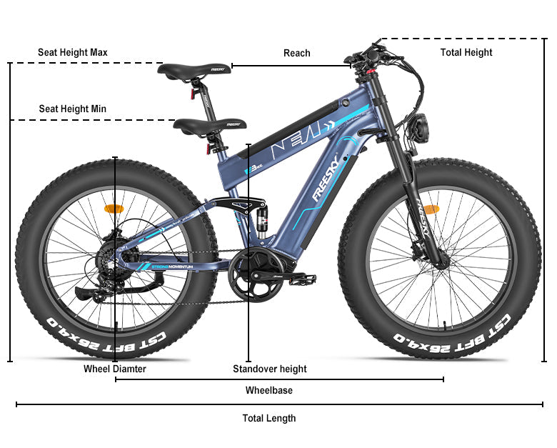 - Fat Tyre Versatility – 26" x 4" tyres give excellent grip on snow, sand, mud, and rocky trails.